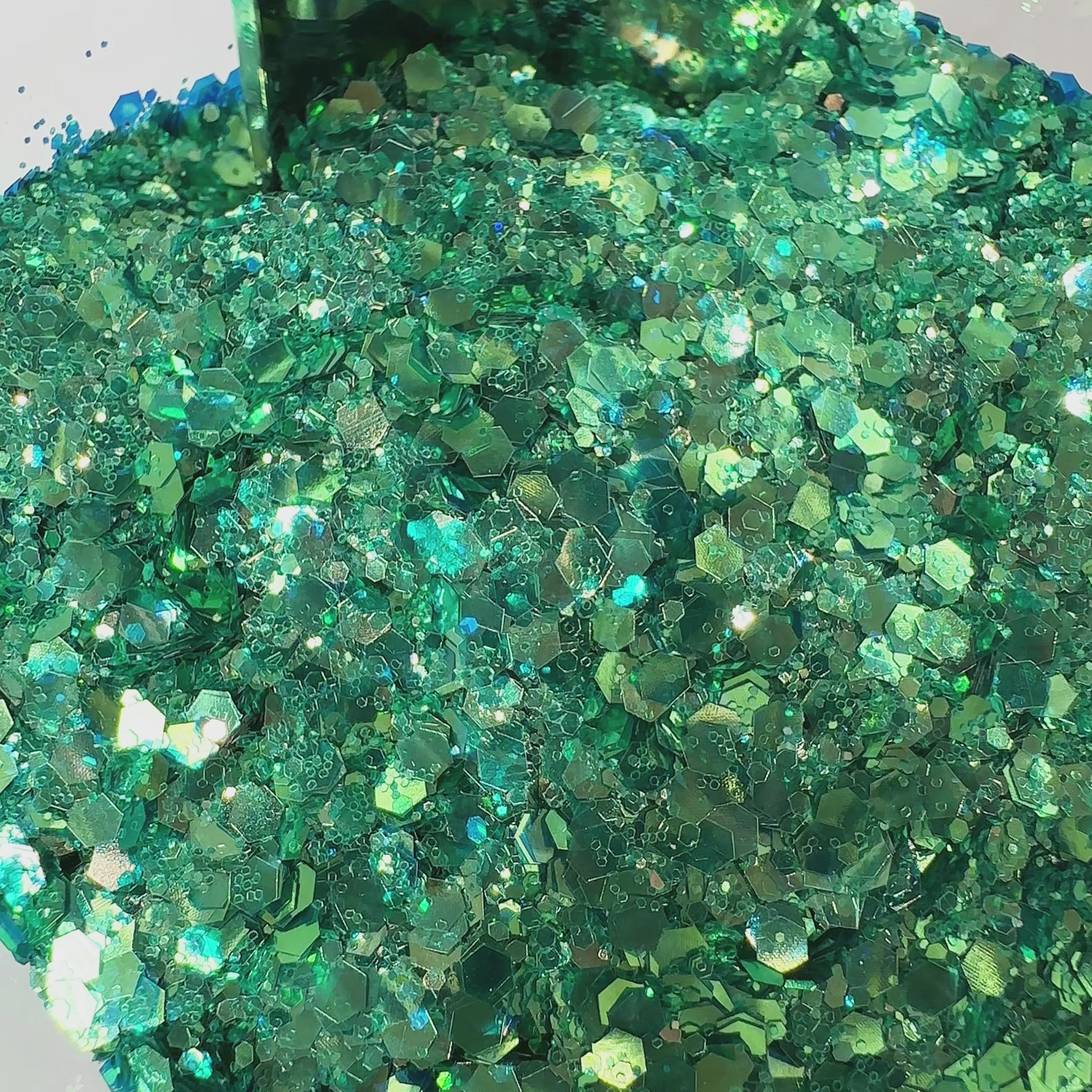 ✨ Chinese Name is ”萌芽(Méng Yá)“(Plant Sprout)✨a glitter that tells a story of romance and beauty. 🌱💚 This glitter embodies the vitality of new plant life, with a deep green color and a hint of blue radiance. Its intense metallic shine adds a vibrant and refreshing touch to your creations, making them stand out with natural elegance.